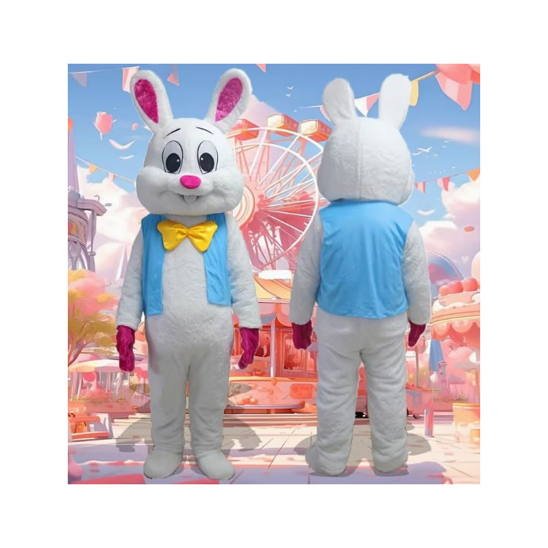 Adorable Mascotte de Lapin - La tête- Les pieds- Le gilet bleue- Les mains- Le noeud papillon