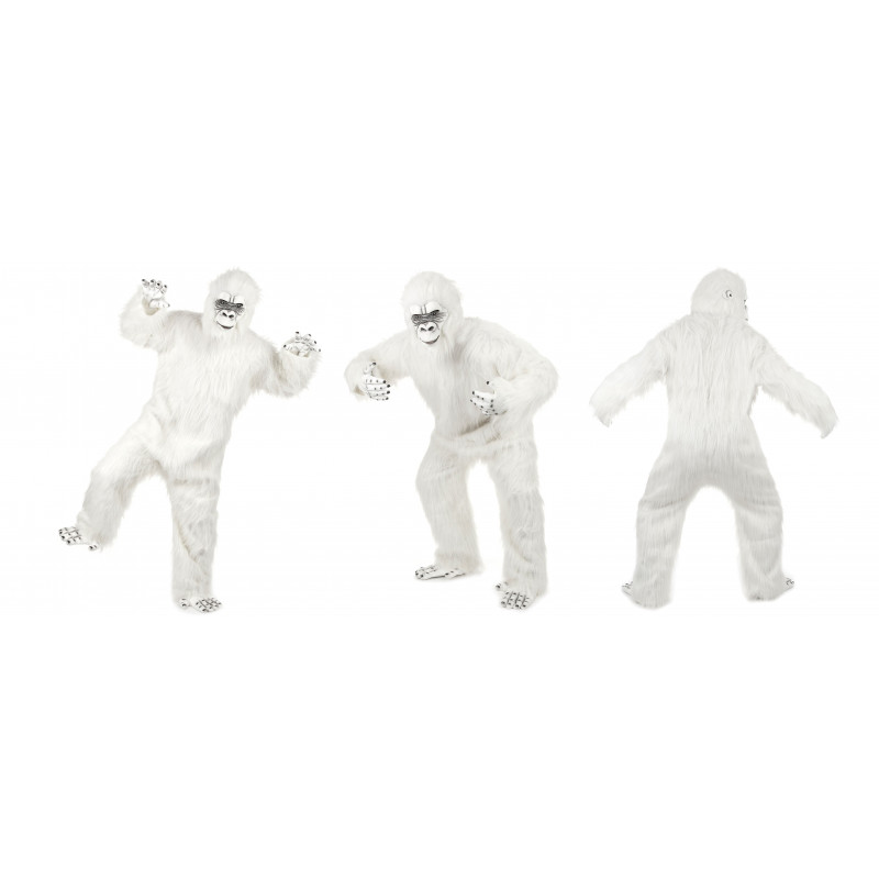 La combinaison est recouverte d'une fausse fourrure blanche. Les poils sont longs et très représentatifs du célèbre Yéti.